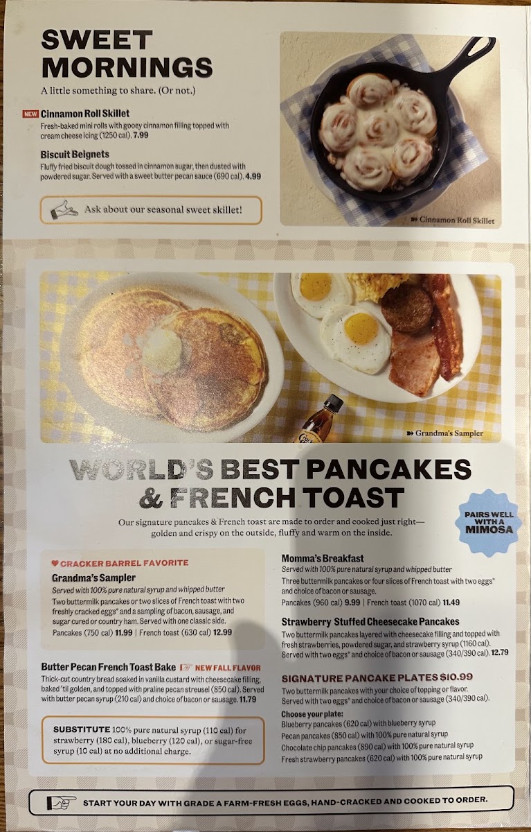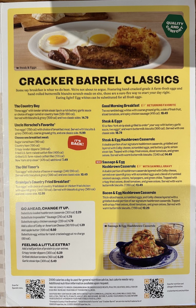 Beyond the food, attentive service and a family-friendly vibe make every visit memorable. From the welcoming servers to prompt, hot dishes, Cracker Barrel blends genuine hospitality with down-home cooking, creating an experience that feels both satisfying and special.